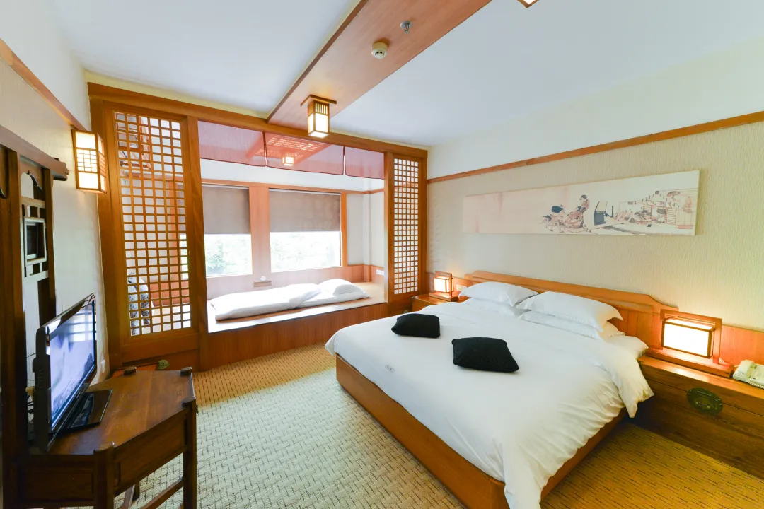 【庙会套餐】长盛庄【盛莊2人上朝】(含早餐+无限次温泉+庙会自助晚餐+单车券+烟花券)110*200cm双床 未知线上支付电询 预订