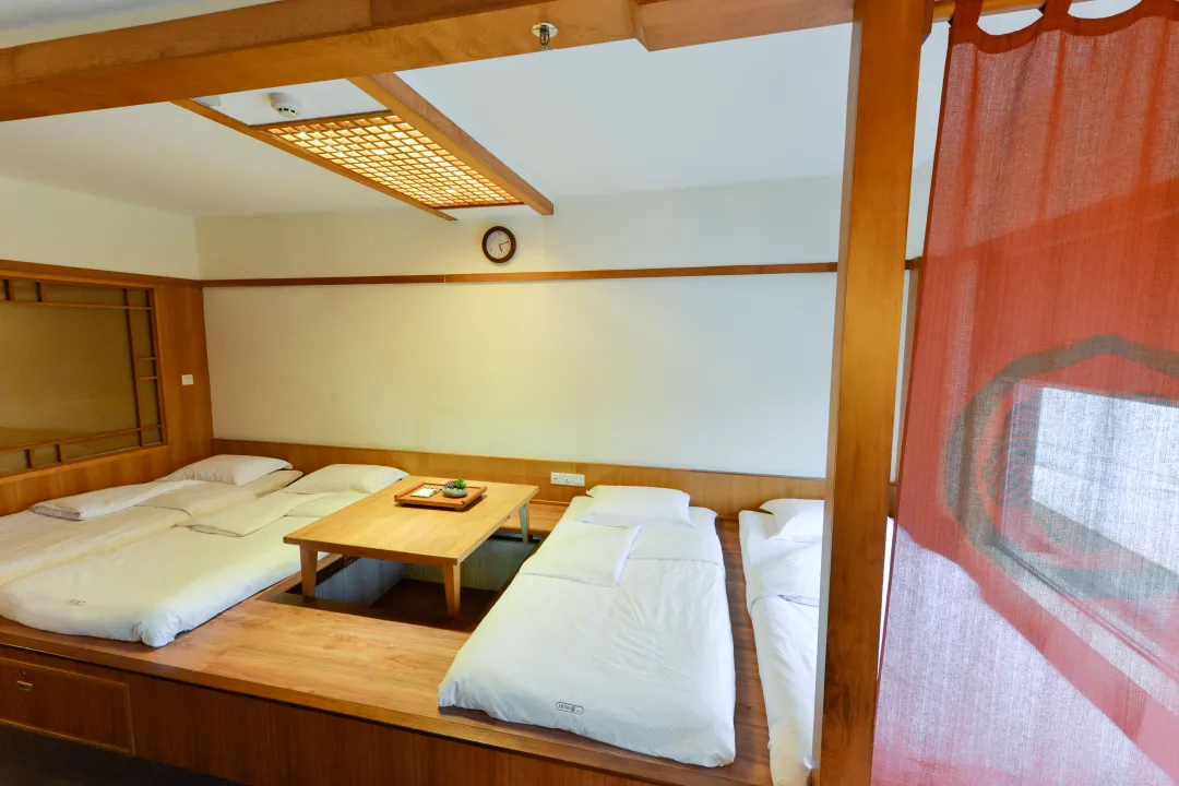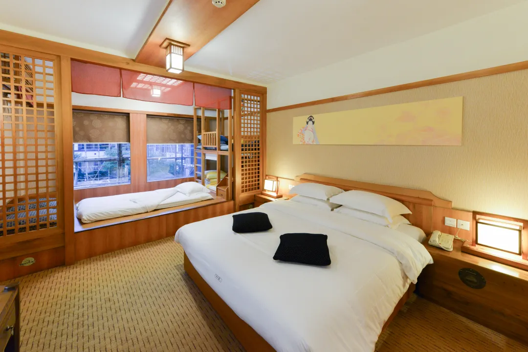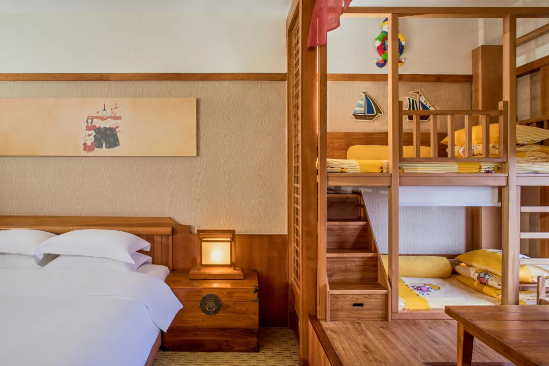 【庙会套餐】云来客栈【4人童趣房(大床+上下床)】(含早餐+无限次温泉+庙会自助晚餐+单车券+烟花券)110*200cm双床 未知线上支付电询 预订