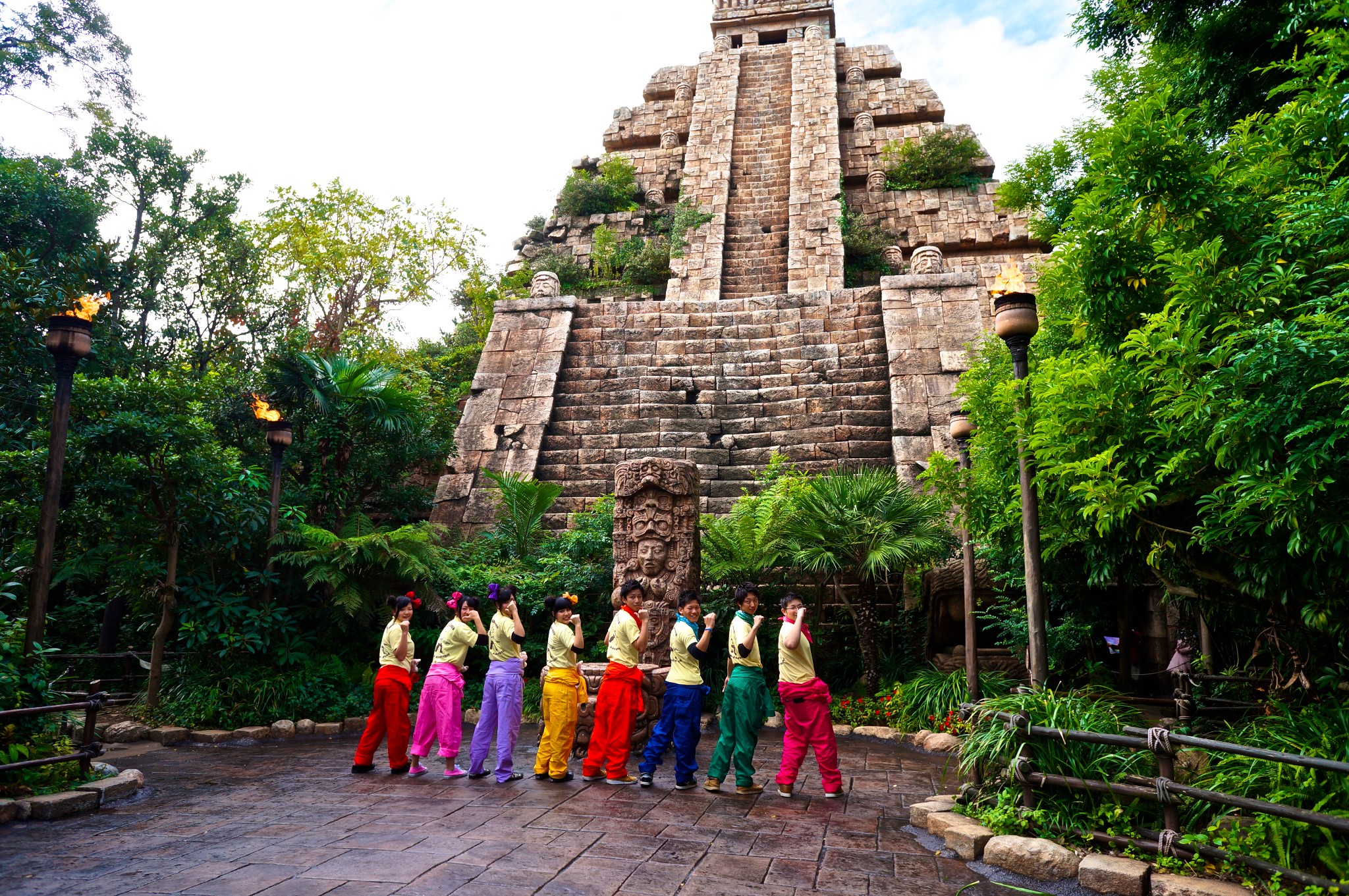 在八点烟花表演开始之前。想起来还没有玩地心探险,赶紧补上