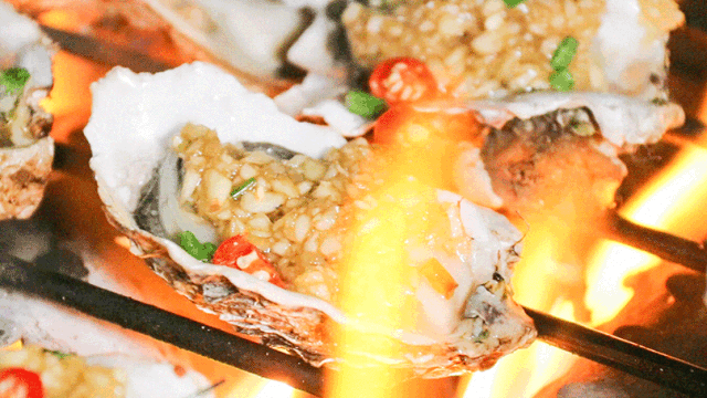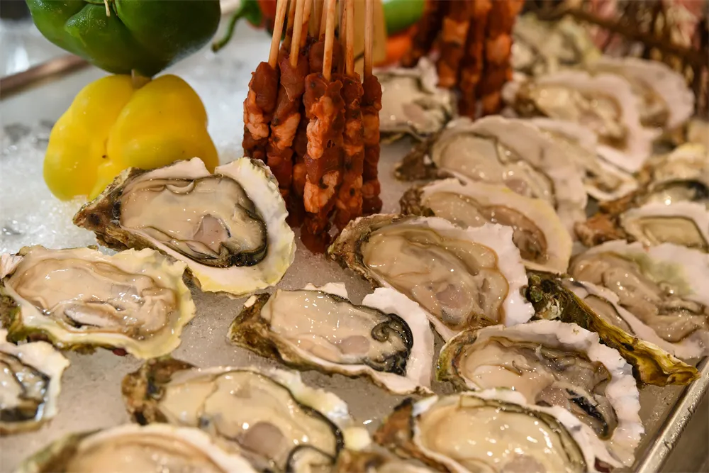 更有现点现蒸海鲜蒜茸生蚝/开边虾任食